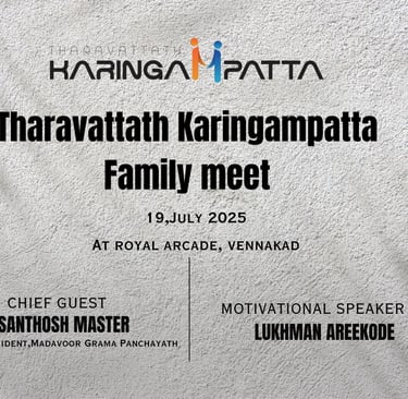 Join us for the first reunion of the Tharavattath Karingampatta family! Celebrate love and togetherness as we gather for a memorable wedding invitation event on July 19, 2025. Don't miss it!